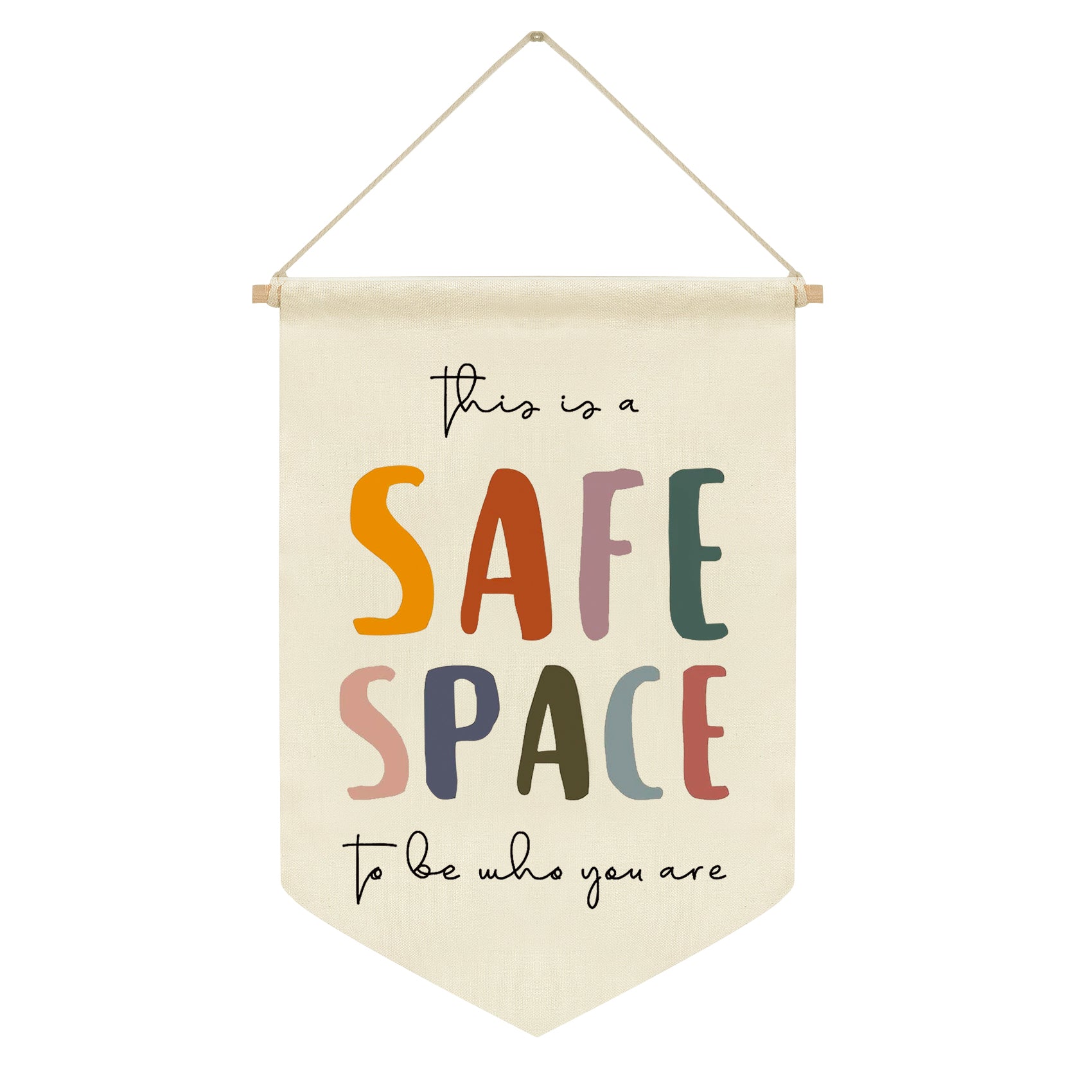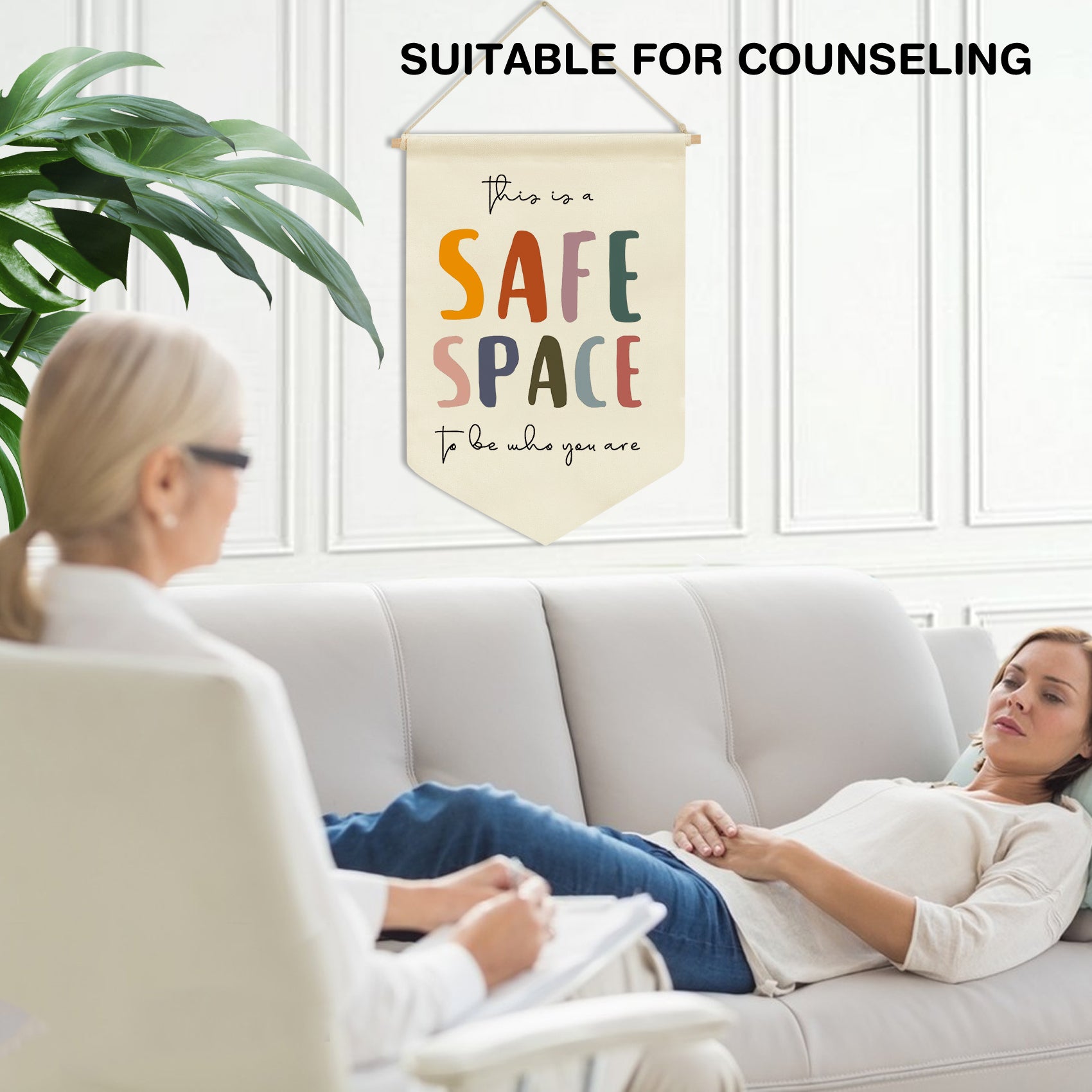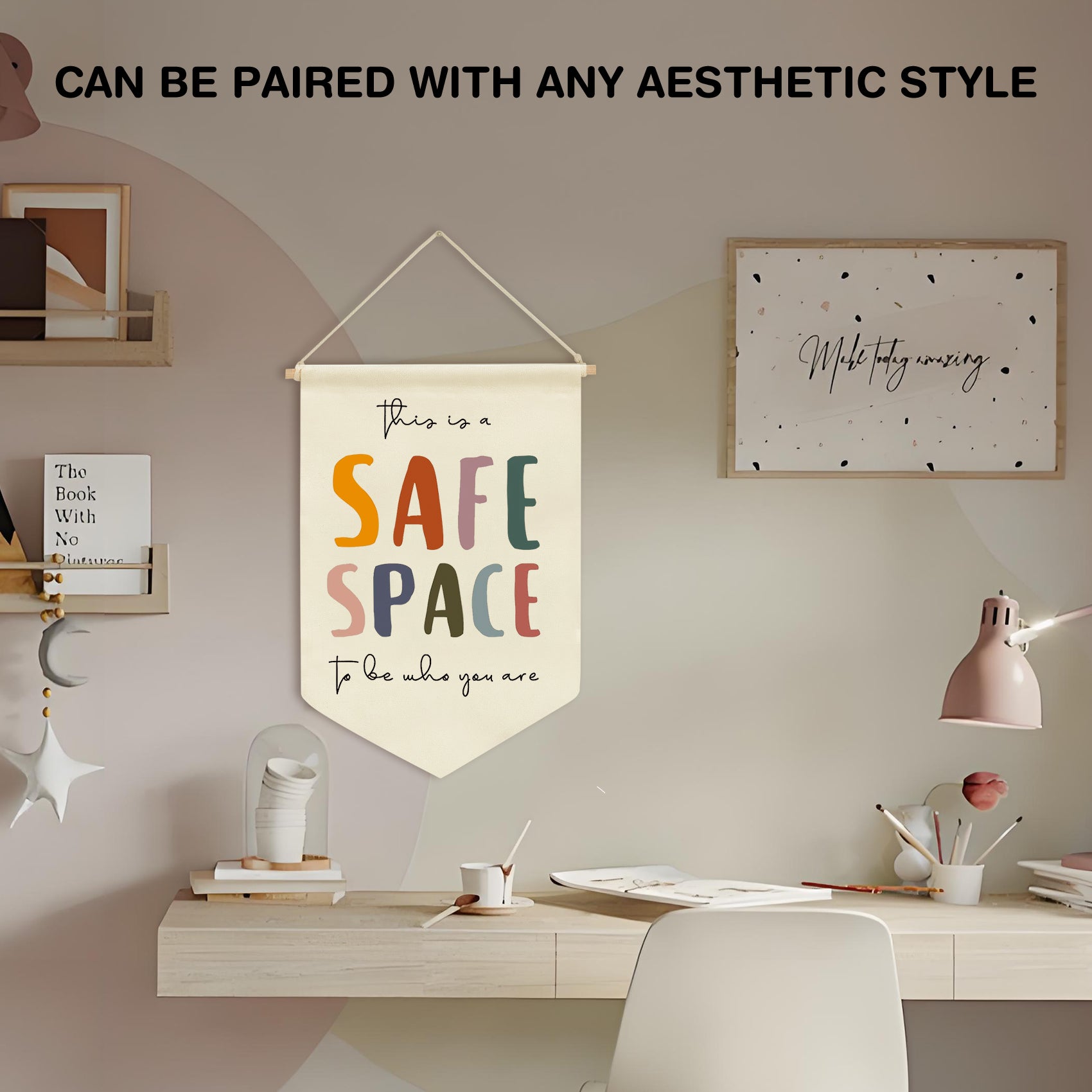 Ainrvteers Safe Space Wall Hanging, Therapy Office Wall Decor, Counseling Banner, School Counselor Office Wall Decor, Classroom Decor, Mental Health Banners, Sensory Room Must Haves (Classics)