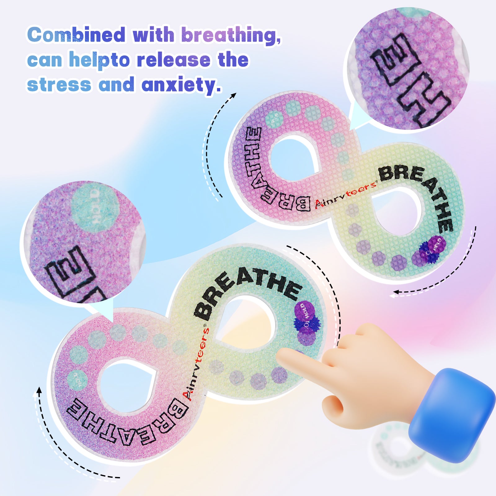- Elegant Design: Ainrvteers calm strips are inspired by the color of rainbow. The clear word “breath” guides your fingers to move on the anxiety sensory stickers so that adults or teenagers quickly calm down. It’s quite suitable to classroom for peaceful environment.